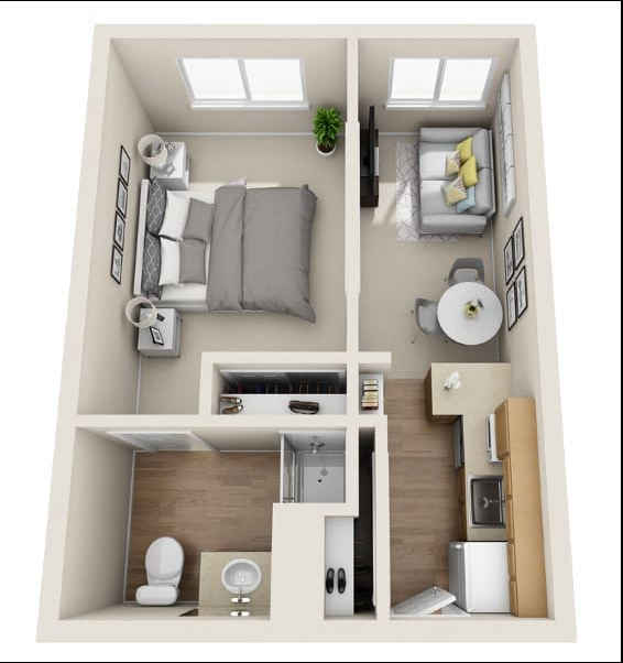 Our shared apartments are designed with comfort, accessibility, and companionship in mind. Each layout offers inviting living spaces that help residents feel at home from the start.